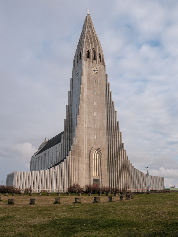 Es el edificio más popular, el más alto de la capital islandesa y de Islandia, con 74,5 m de altura. Puedes acceder a su fantástico mirador y tener unas vistas espectaculares de la ciudad. Nosotros no hemos subido aun porque nos gustaría hacerlo al atardecer y en estas fechas aún no se ponía el sol.