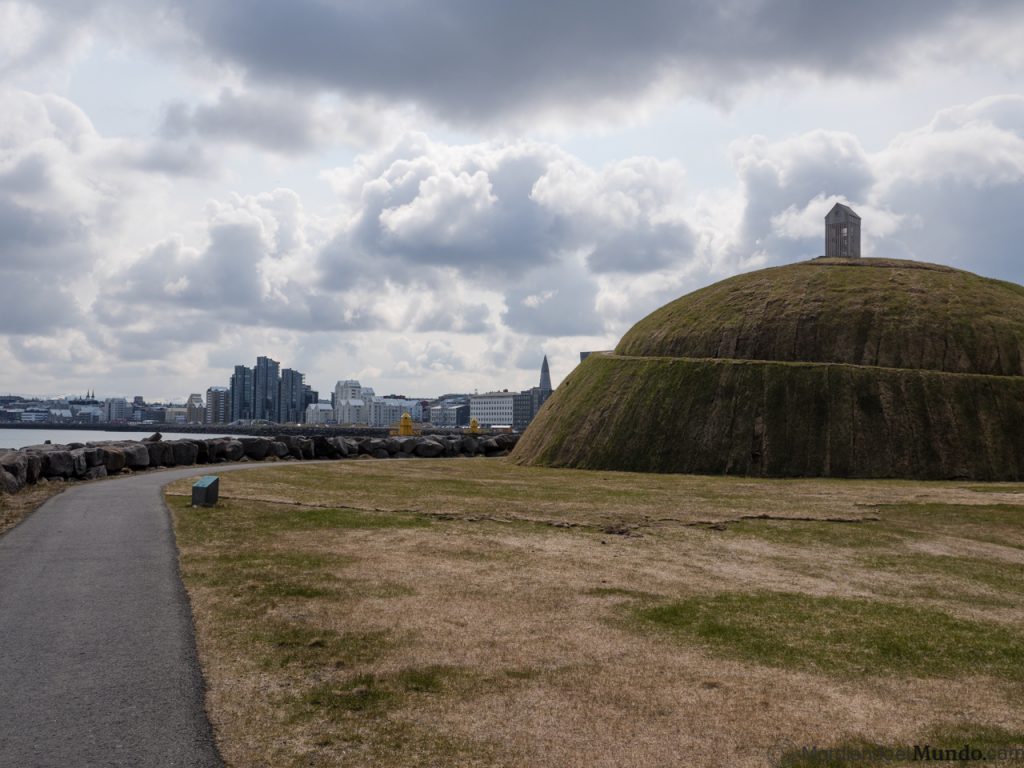 Se puede subir a «lo alto» de la colina por un camino circular que la rodea. Arriba, además de unas vistas bastante chulas de Reykjavik, el puerto, y del edificio de el Harpa, hay un cobertizo para secar pescado.