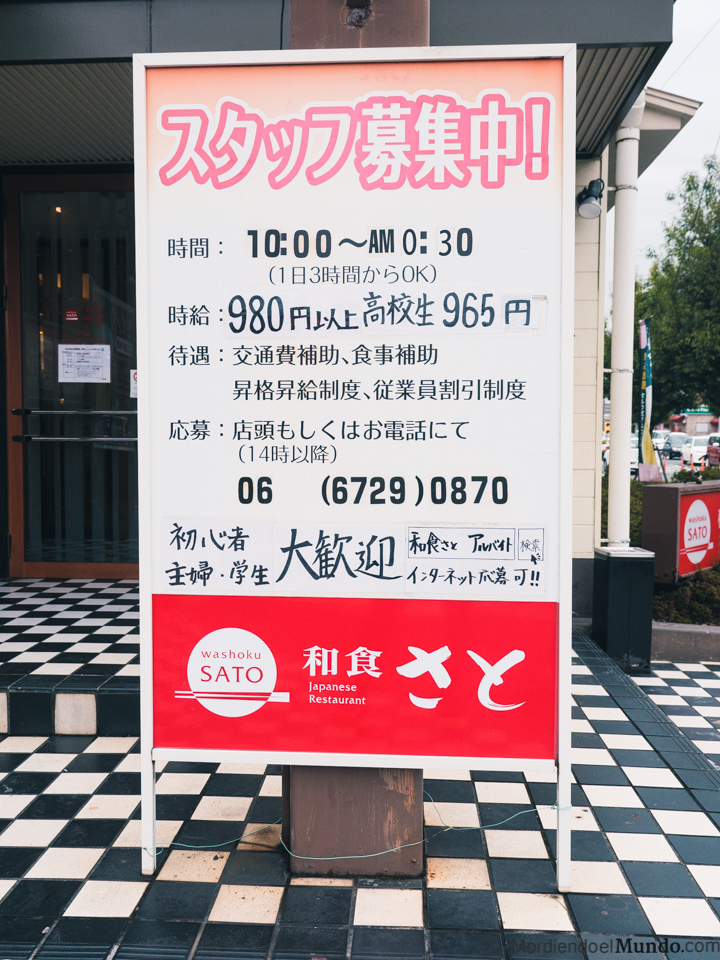 Paseando por cualquier calle (y no exageramos) de Japón, verás decenas de carteles en los que se busca personal. Normalmente están en japonés pero son muy fáciles de identificar, incluso de un vistazo puedes ver lo que te pagan y las franjas horarias en las que puedes trabajar.